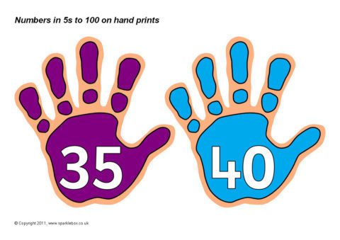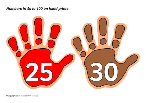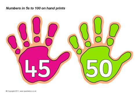 Numbers in 5s to 100 on Hand Prints (SB4360) - SparkleBox