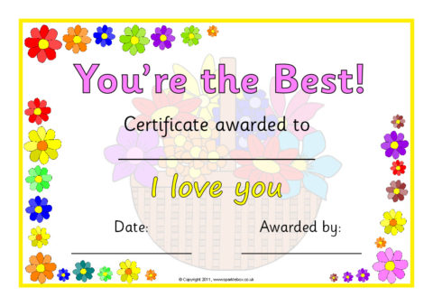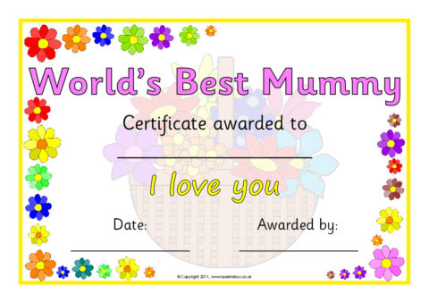 Printable certificates for children to present to their mum or guardian on Mother’s Day. Children fill in ‘presented to... mum’, the date and their name.