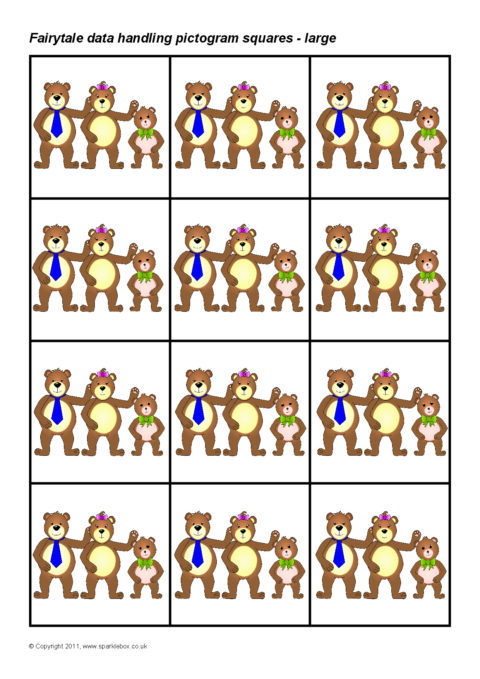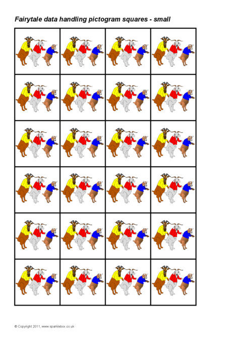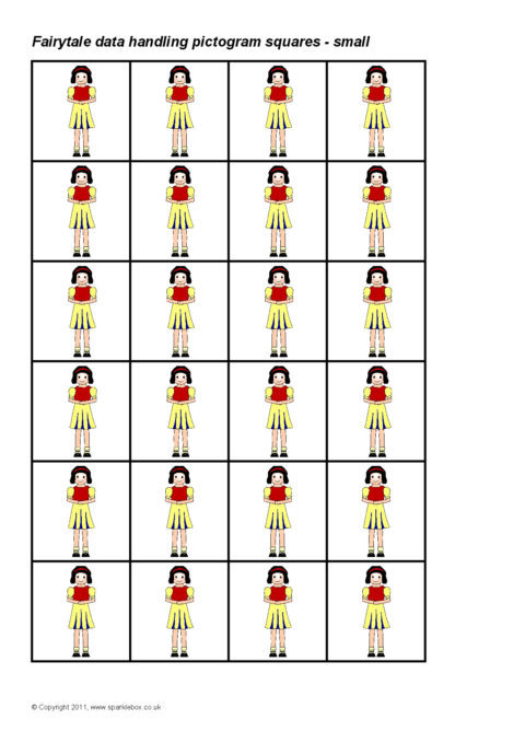 Printable squares featuring different fairytales. Ideal for use when creating a pictogram to showing the results of a ‘favourite fairytale’ class survey.