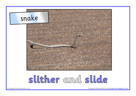 A set of printable posters that show animals that move in different ways: jump, slither, swim, leap, crawl, walk etc.