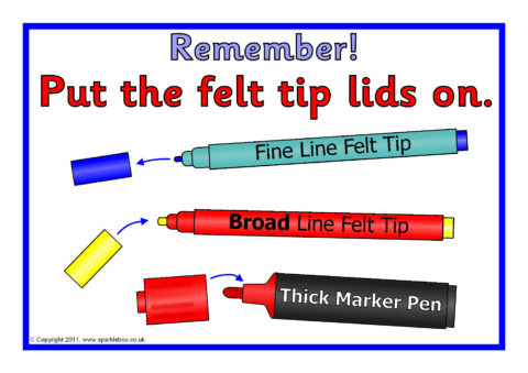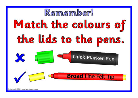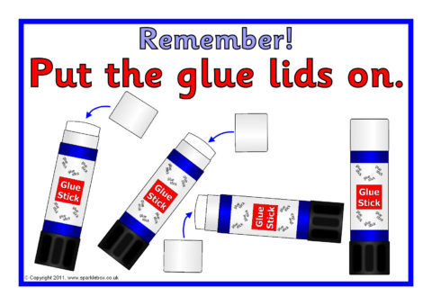 A set of posters to remind children to put the lids on glue sticks and felt tip pens.