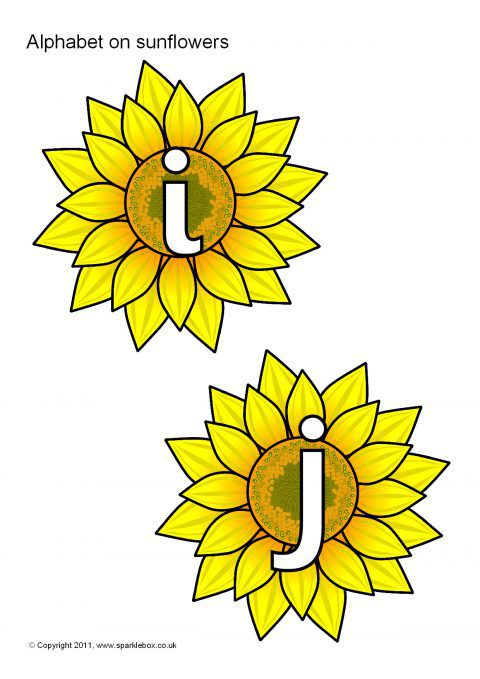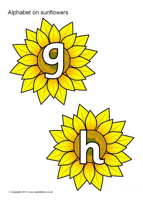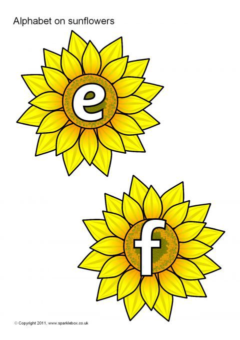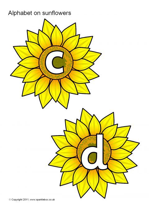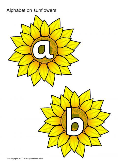 The lowercase alphabet letters presented on sunflowers. Includes printable stalks to make your sunflowers as tall as you like.