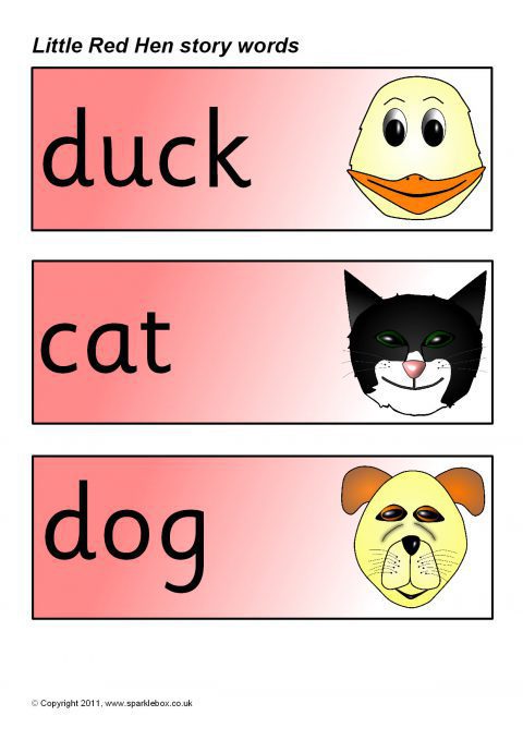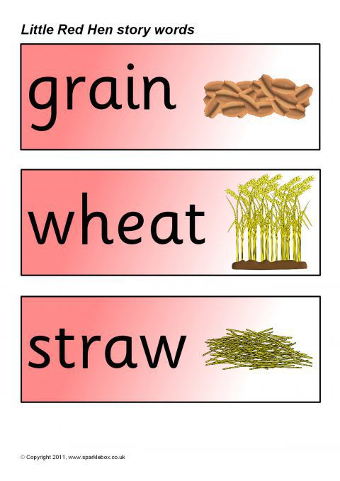 A set of printable word and picture cards linked to the story of The Little Red Hen.