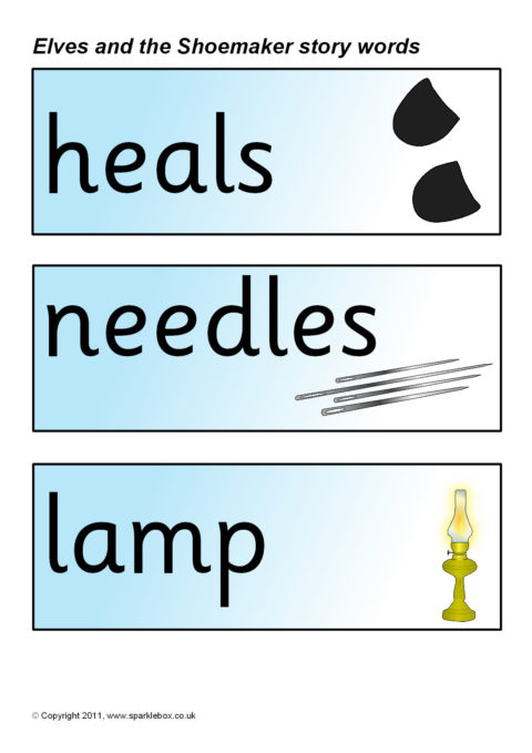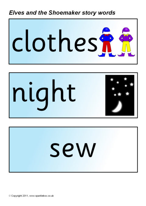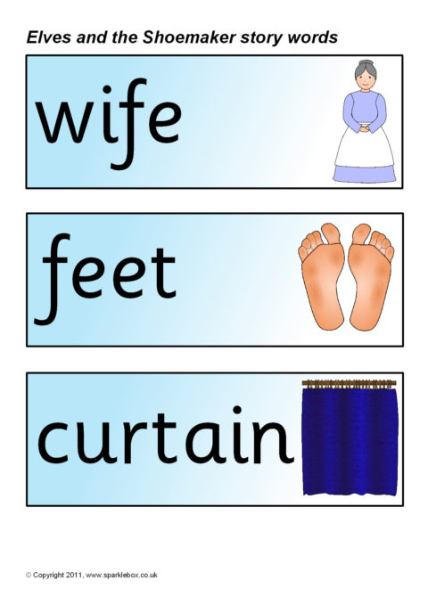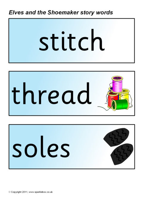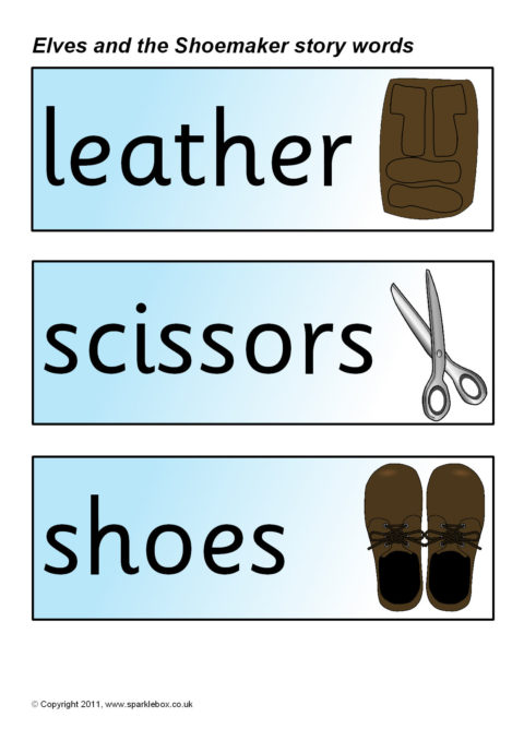 A set of printable word and picture cards linked to the story of The Eves and the Shoemaker.