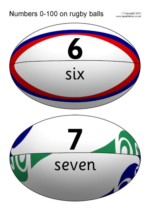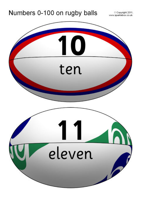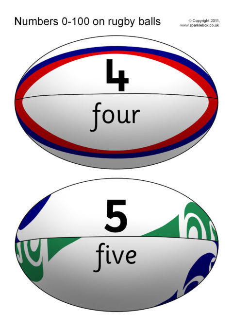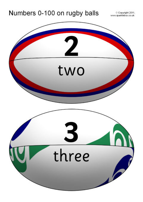 Numbers and Words to 100 on Rugby Balls