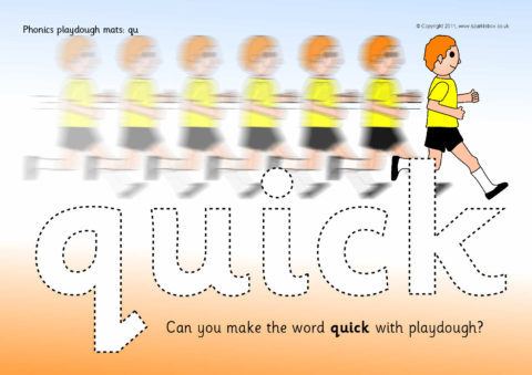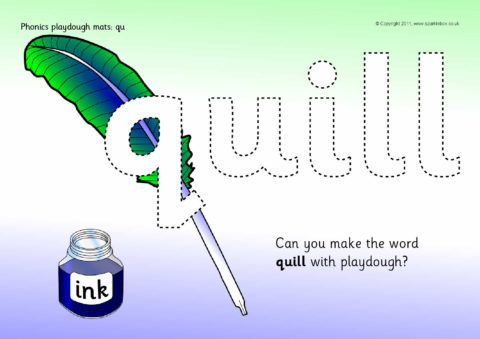 A set of simple printable mats where children make words with ‘qu’ from playdough.