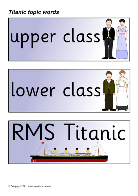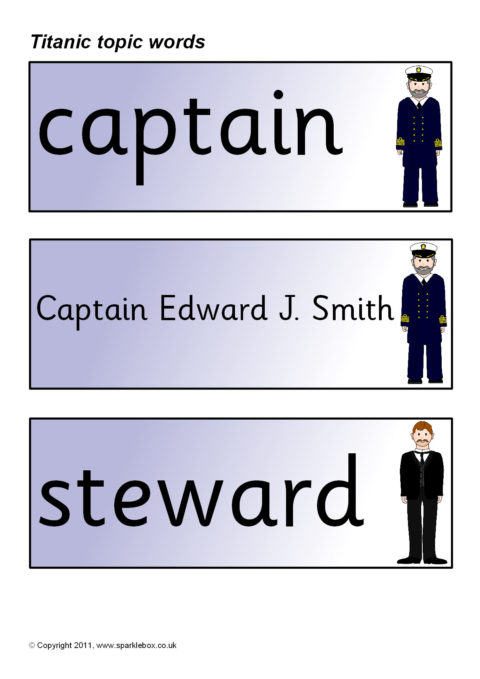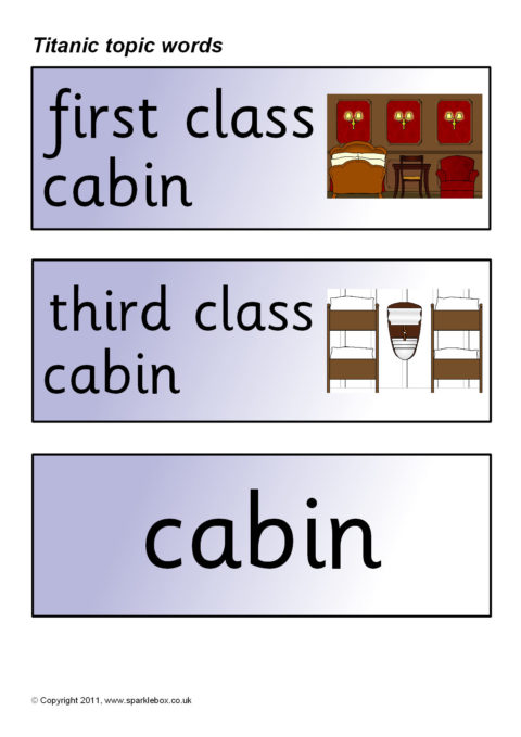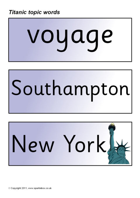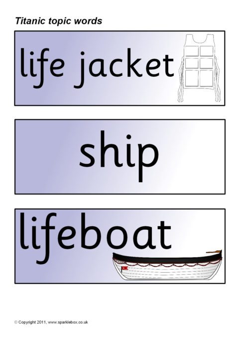 Printable word and picture cards linked to the Titanic.