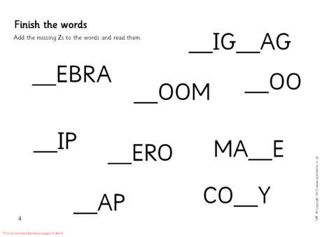 A set of sheets which can be assembled into an A5 folded booklet to give to pupils. It includes activities to aid recognition of the ‘Z’ sound. Ideal as a homework resource.