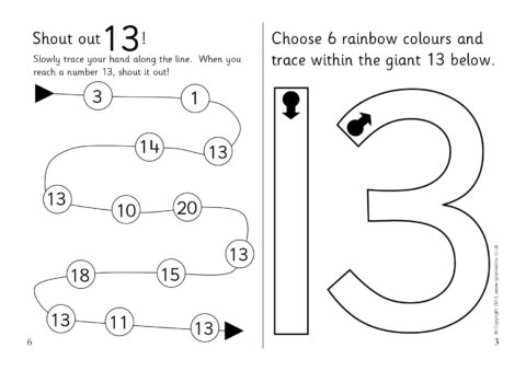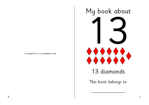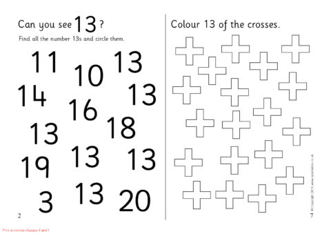 A set of sheets which can be assembled into an A5 folded booklet to give to pupils. Includes activities to aid recognition and writing of the number 13. Ideal as a homework resource.