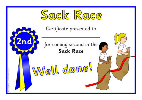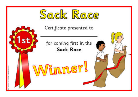 Simple certificates to present to participants of your sack race on sports day.