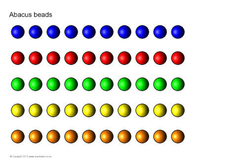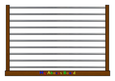 A printable sheet featuring a simple abacus that can be laminated for use with dry-wipe pens where children draw on the beads as appropriate. Also includes bead images that could be laminated and moved around on the board.