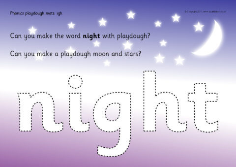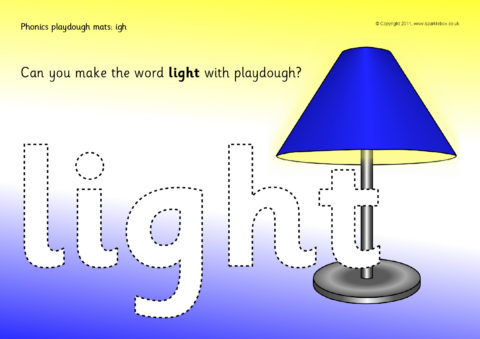 A set of simple printable mats where children make words with ‘igh’ and related objects from playdough.