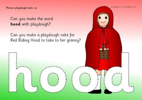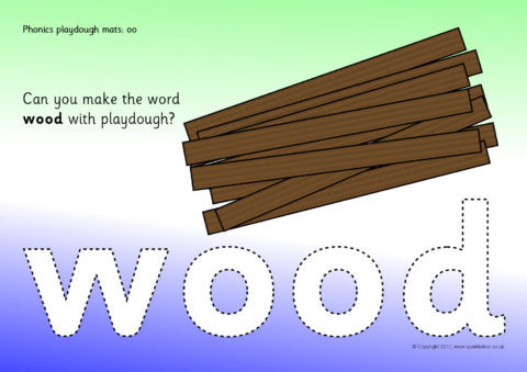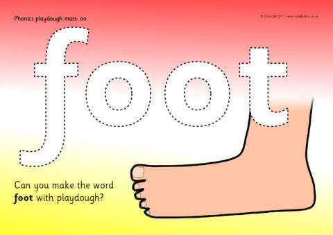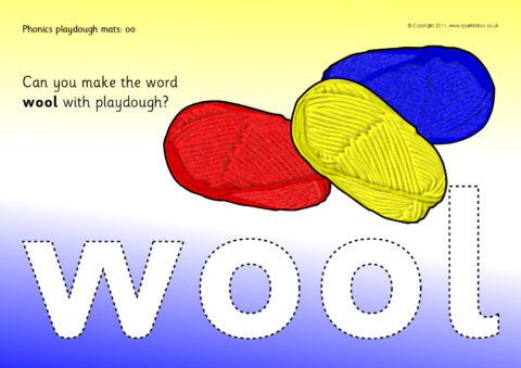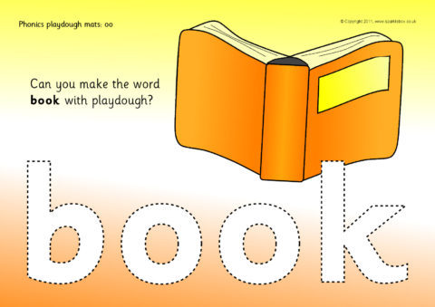 A set of simple printable mats where children make words with the short ‘oo’ sound and related objects from playdough.