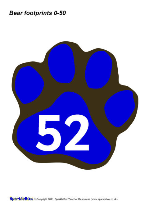 Numbers 51-100 on Bear Paw Prints (SB4717) - SparkleBox