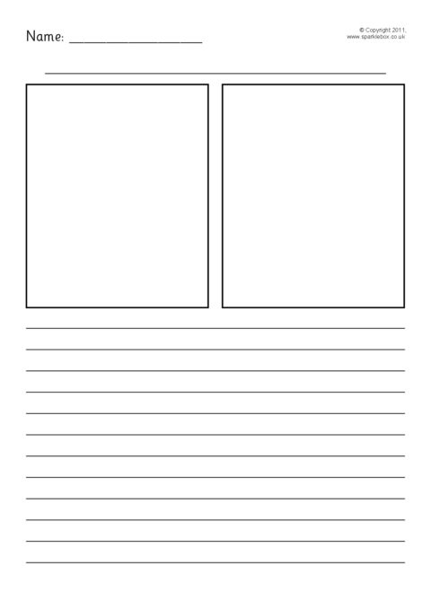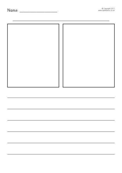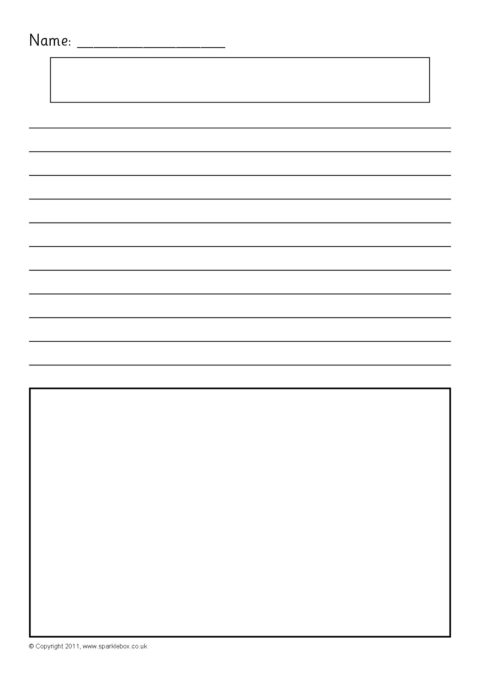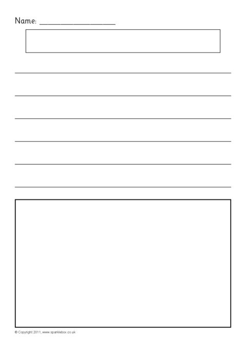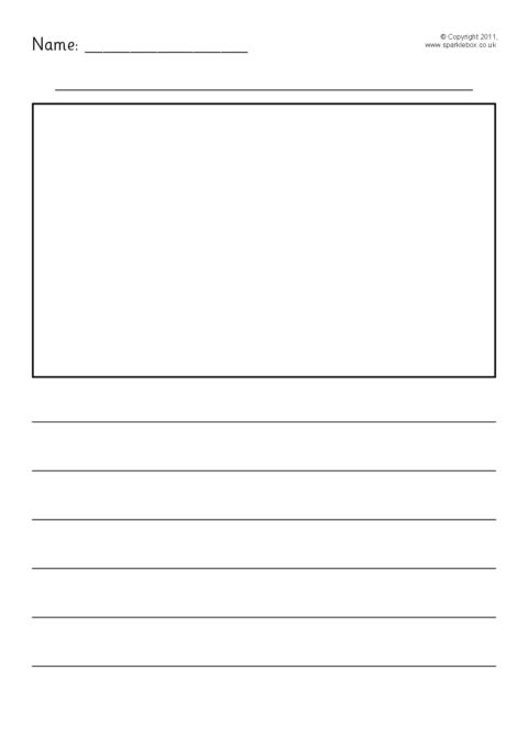 A set of basic A4 writing frames with writing lines and space for a picture.