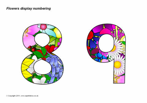 PDF document with numbers 0-9 themed with flowers. These are great for printing and cutting out for use on displays.