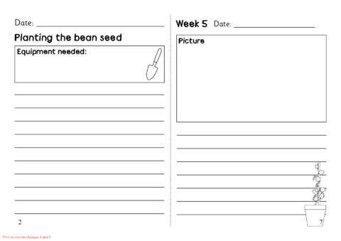 Printable bean plant diary booklets for pupils to fill out to record the growth of their bean plant. Includes spaces to write about how they planted their seed and record its growth over a number of weeks.