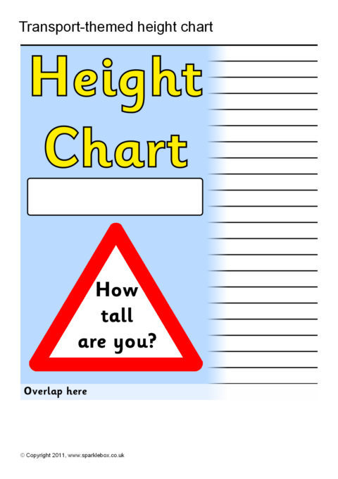 A colourful printable height chart that can be assembled and fixed to a wall. The chart goes up to 160cm but can be assembled to be as tall or short as you require.