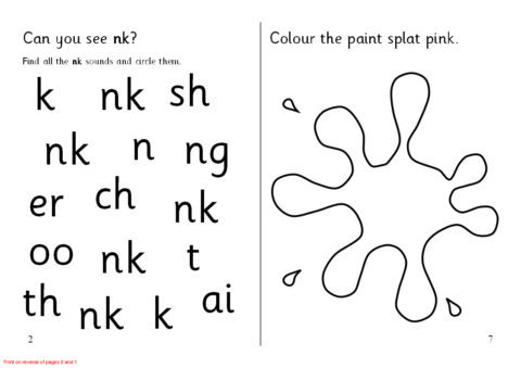 A set of sheets which can be assembled into an A5 folded booklet to give to pupils. It includes activities to aid recognition of the final blend nk. Ideal as a homework resource.