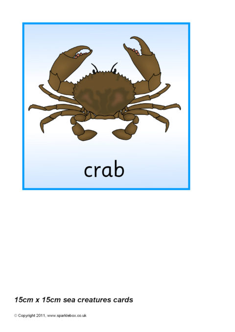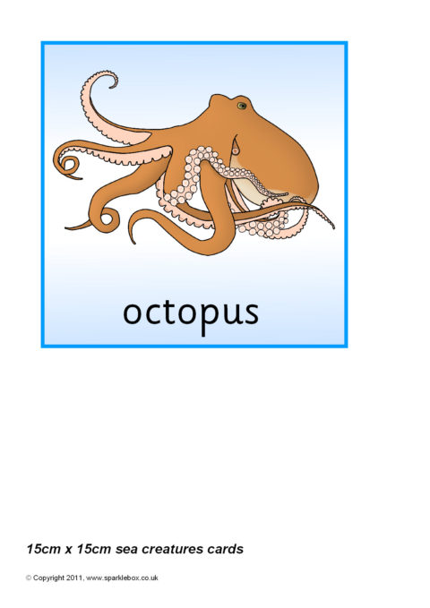 Multi-use printable cards featuring a selection of sea creatures. Each card is 15cm by 15cm and can be printed for use in classroom displays or word banks and all sorts of card-based activities.
