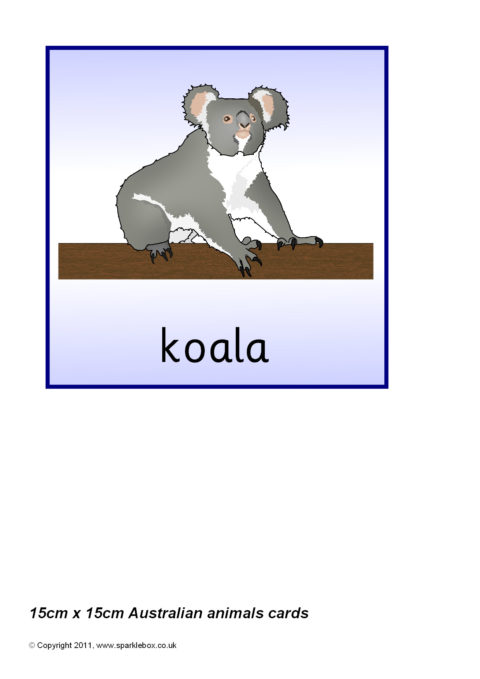 Multi-use printable cards featuring a selection of Australian animals. Each card is 15cm by 15cm and can be printed for use in classroom displays or word banks and all sorts of card-based activities.