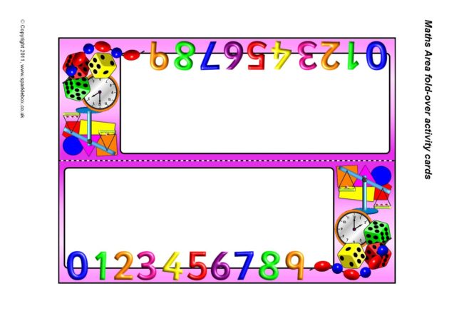 Editable fold-over cards to place in your classroom maths area - great for all sorts of uses. Use them to specify activities for pupils to complete, list pupils/groups that can play in the area or remind children of important rules to adhere to.