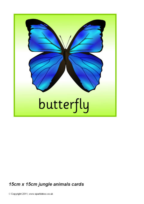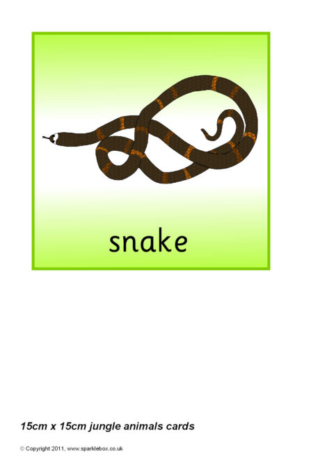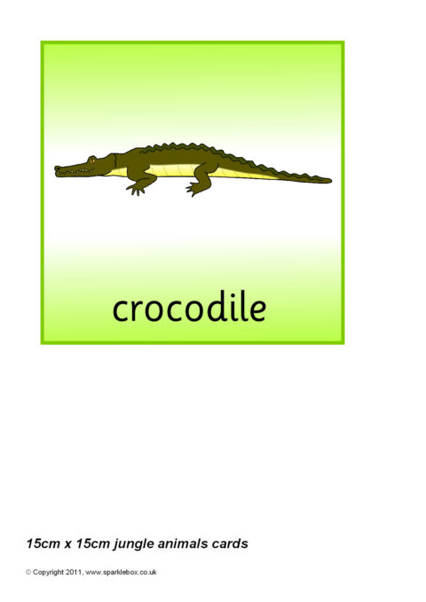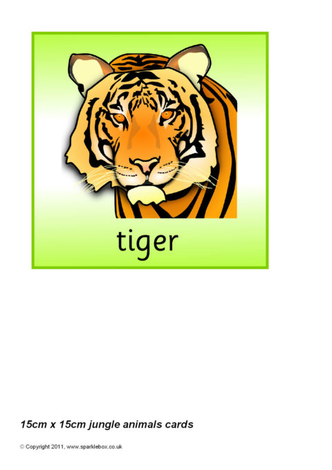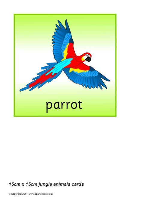 Multi-use printable cards featuring a selection of jungle/rainforest animals. Each card is 15cm by 15cm and can be printed for use in classroom displays or word banks and all sorts of card-based activities.
