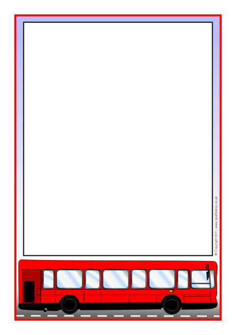 Portrait and landscape A4 page borders featuring a red bus on the road. Includes editable Microsoft Word templates as well as resizable JPG images.