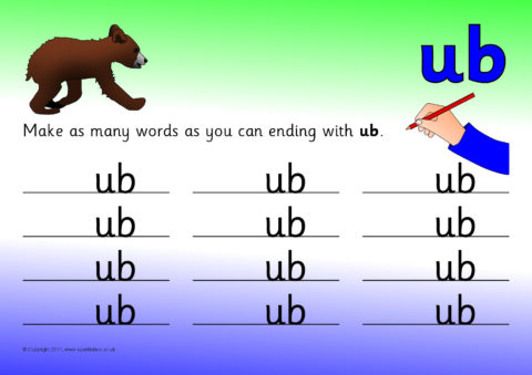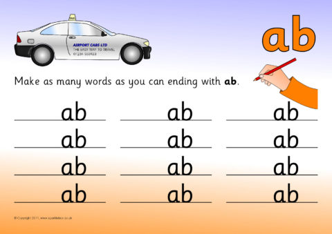 Printable desktop mats that can be laminated for use with dry-wipe pens. Children add initial sounds to make words ending with -b rimes.