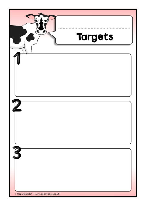 A set of farm animals-themed editable pupil target sheets. Customise with pupil’s name and space to type 3 targets.