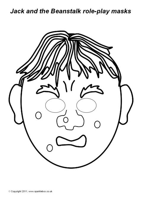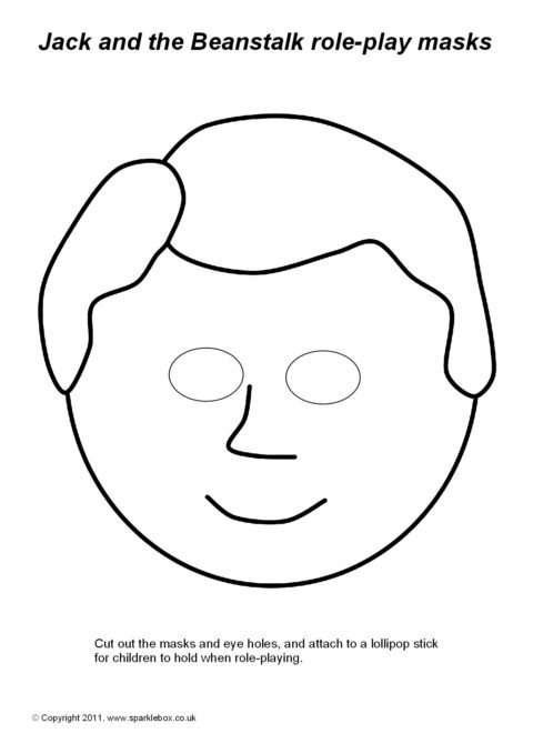 A great set of printable masks for role-playing or performing the story of Jack and the Beanstalk. Simply print them out on card, colour, cut out the eyes and stick on a lollipop stick and your children will love acting out the story!