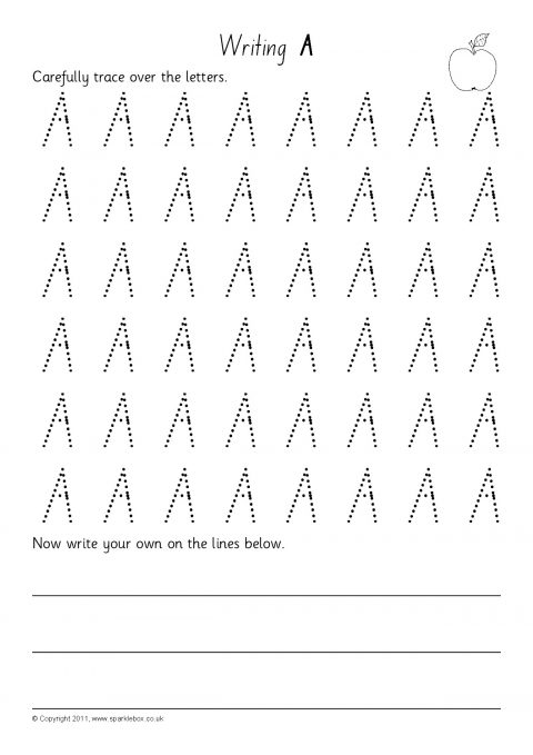 A set of basic worksheets where pupils trace and write uppercase letters from A-Z.
