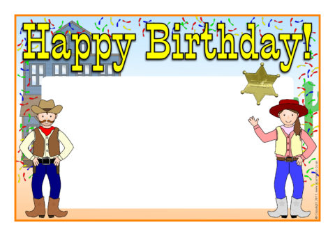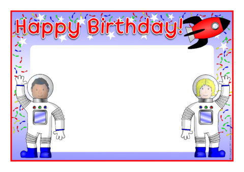 A set of themed posters with the text, ‘Happy Birthday’ and space to enter the child’s name.