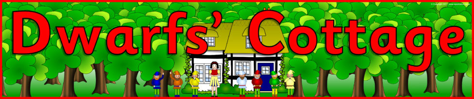 A colourful banner for your Dwarfs’ Cottage role-play area. Ideal for role-play linked to the story of Snow White and the Seven Dwarfs.