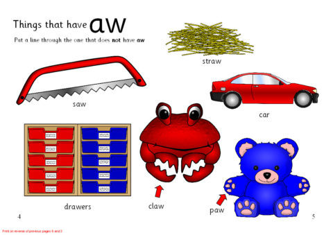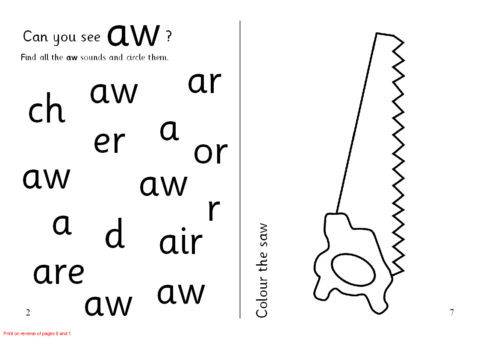 A set of sheets which can be assembled into an A5 folded booklet to give to pupils. It includes activities to aid recognition of the ‘aw’ sound. Ideal as a homework resource.