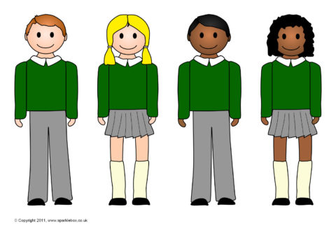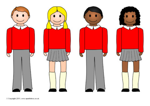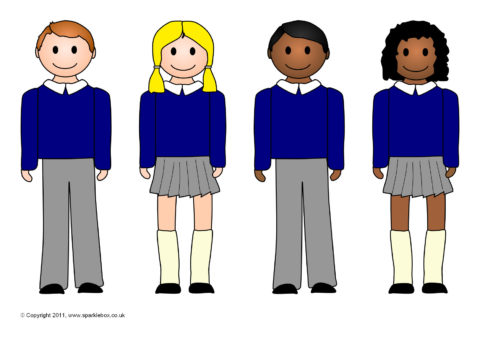 Printable pictures of school children in different coloured uniforms. Add the names, print out & laminate.