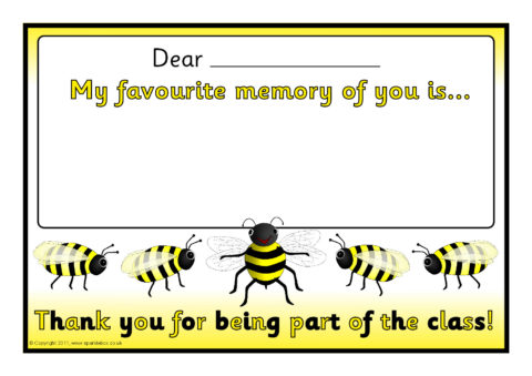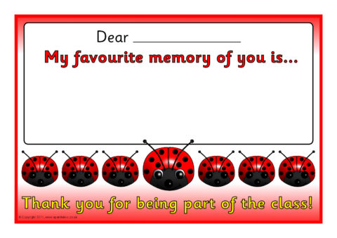 End of Year ‘Favourite Memory’ Teacher Sheets