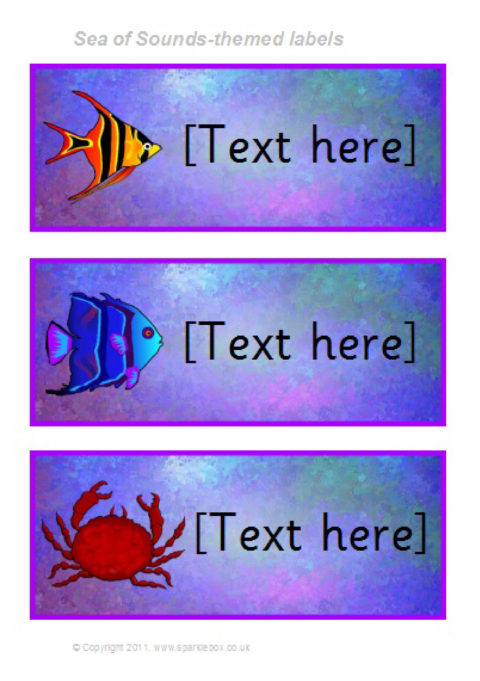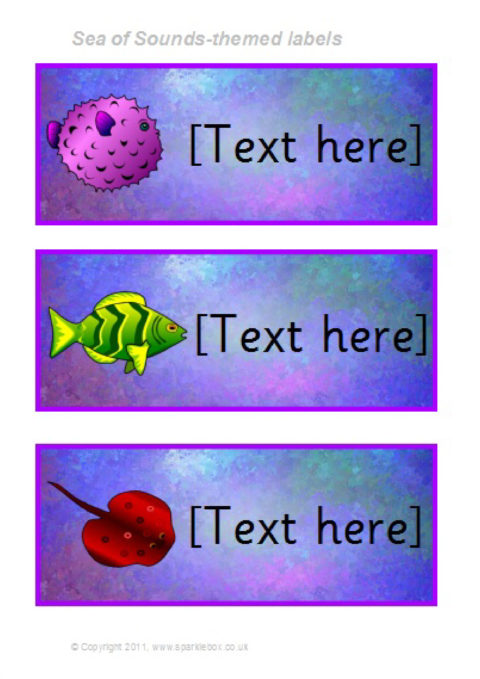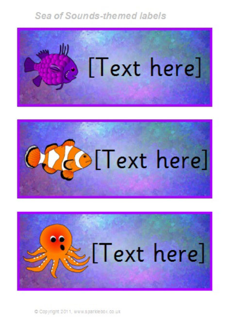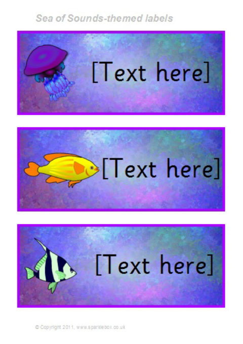 Add your own text to a variety of colourful label backgrounds using Microsoft Word. The labels can be resized in Word to suit your needs, and the text size and font can also be altered easily. Designed to link to our Sea of Sounds Phonics