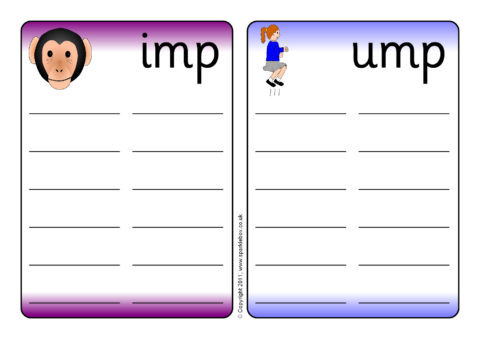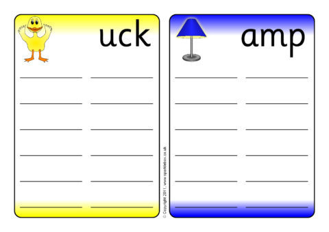 A set of printable cards featuring various rimes. Laminate the cards for use with dry-wipe pens where children write new words using the rime on their card.
