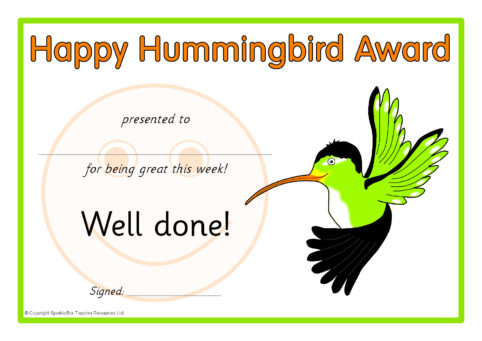 Hummingbird Award Certificates (SB5426) - SparkleBox