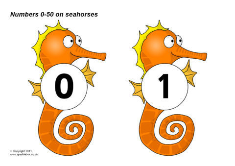 Numbers 0-50 on Seahorses