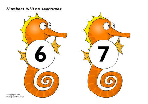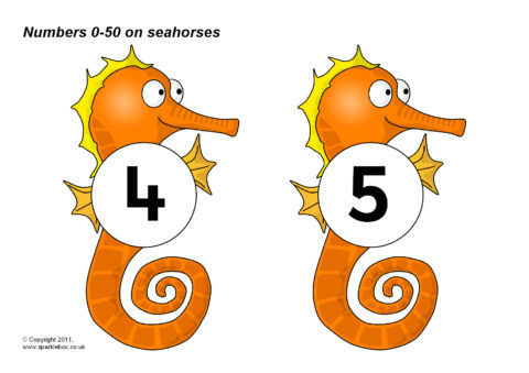 Numbers 0-50 on Seahorses (SB5434) - SparkleBox