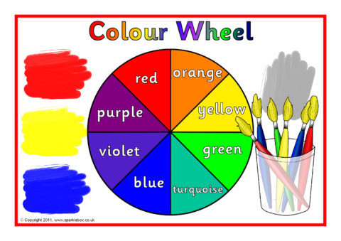 A set of posters and cut-out colour wheels for use when colour mixing.