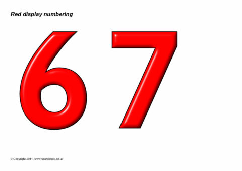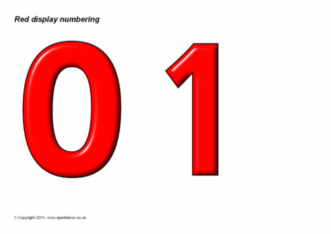 A PDF document with numbers 0-9 and mathematical symbols coloured red. These are great for printing and cutting out for use on displays.