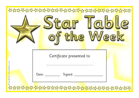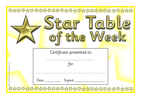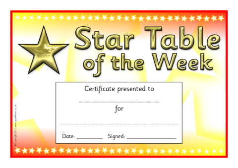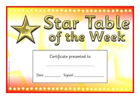 Award certificates to present to your ‘star’ table or group at the end of the week.
