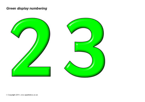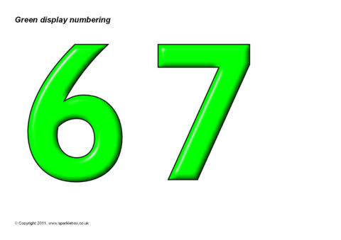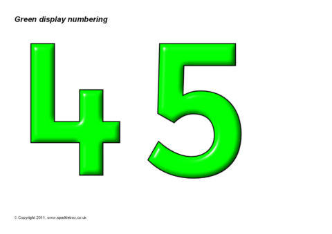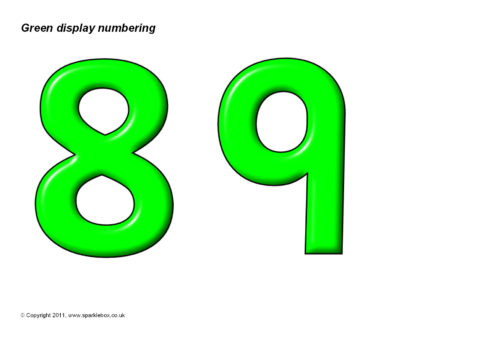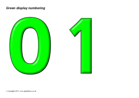 A PDF document with numbers 0-9 and mathematical symbols coloured green. These are great for printing and cutting out for use on displays.