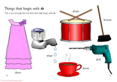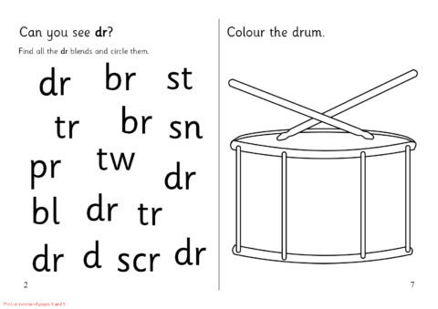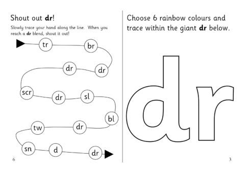 A set of sheets which can be assembled into an A5 folded booklet to give to pupils. It includes activities to recognition of the initial blend 'dr'. Ideal as a homework resource.