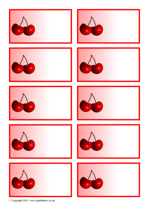 A set of editable peg labels (10 per page) featuring various fruits. Ideal for use in your cloakroom area or for pupil drawers.
