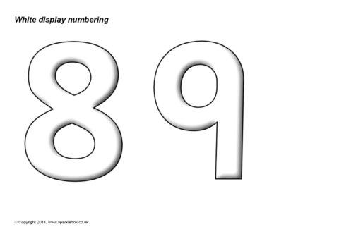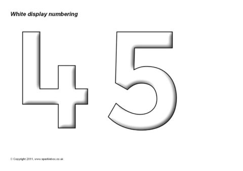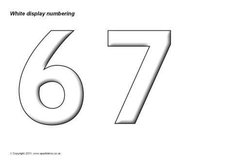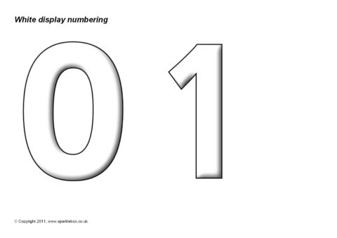 A PDF document with numbers 0-9 and mathematical symbols coloured white. These are great for printing and cutting out for use on displays.