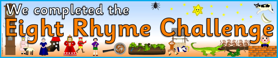 A colourful banner with the text ‘We completed the Eight Rhyme Challenge’.